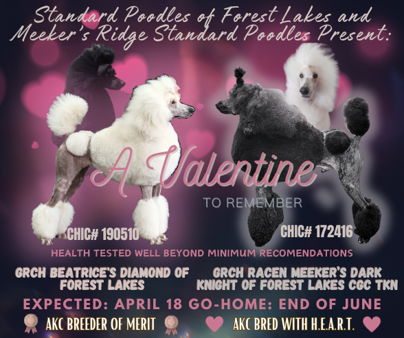 If interested in a healthy, socialized and well-started puppy from Standard Poodles of Forest Lakes, please complete our application.