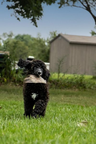 Poodles of any size are very active dogs who require good exercise every day to suit their high energy level. Poodles are eager for all kinds of activity, and they enjoy keeping busy. Swimming is great exercise for them, and most Poodles love to get in the water. Bred as hunting dogs, their impulse is to retrieve, so tossing toys, sticks, or balls for them will exercise both their mind and body. They also thrive on going for jogs or long walks with their human. (akc.org)