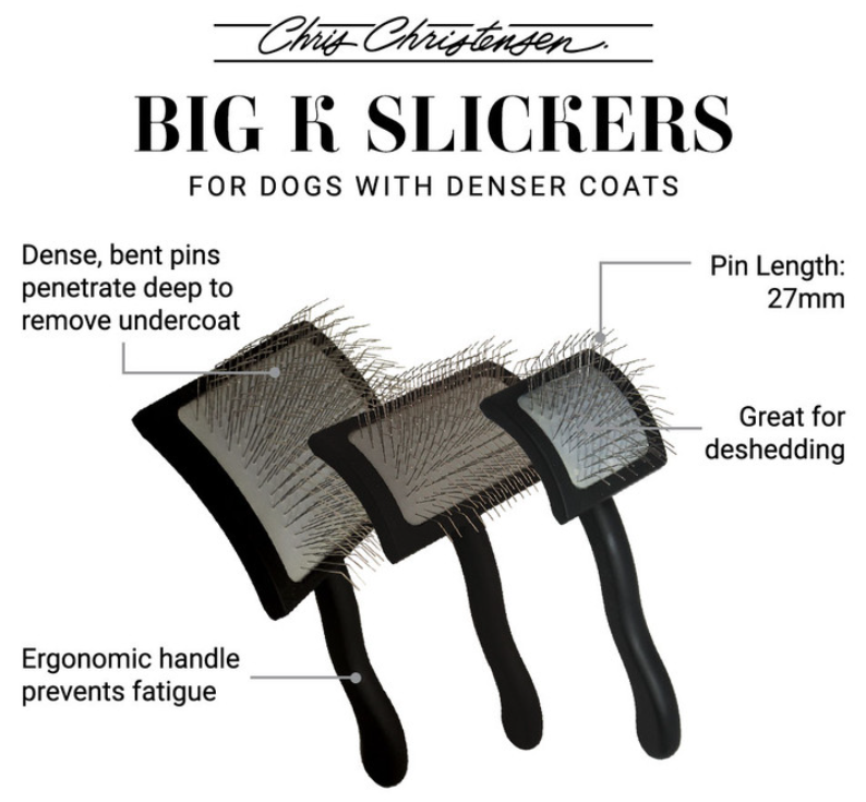 Comb – wide, long tooth for finding and working on larger mats in a thicker and/or longer coat.