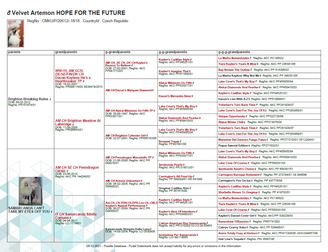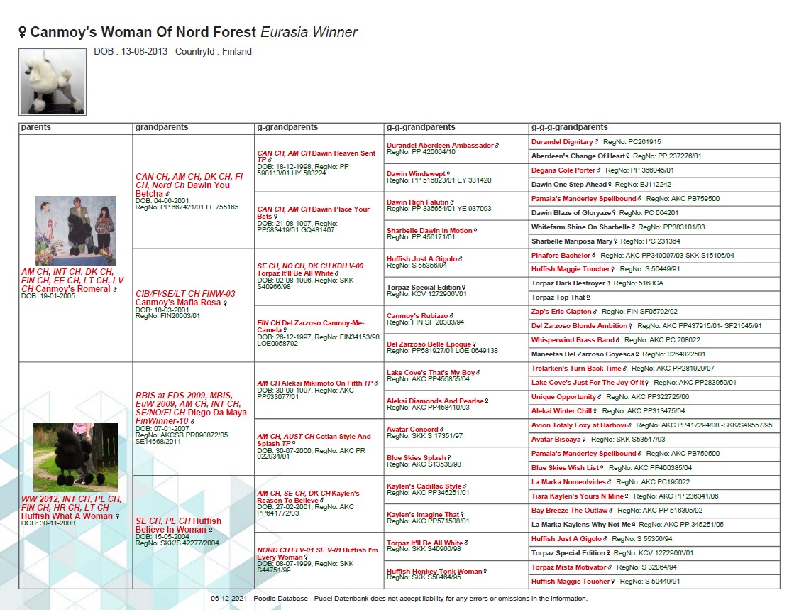 | Dam: | JRCH CH-RFK BEST JUNIOR EURASIA 2018 Nord Forest Makes People Talk |