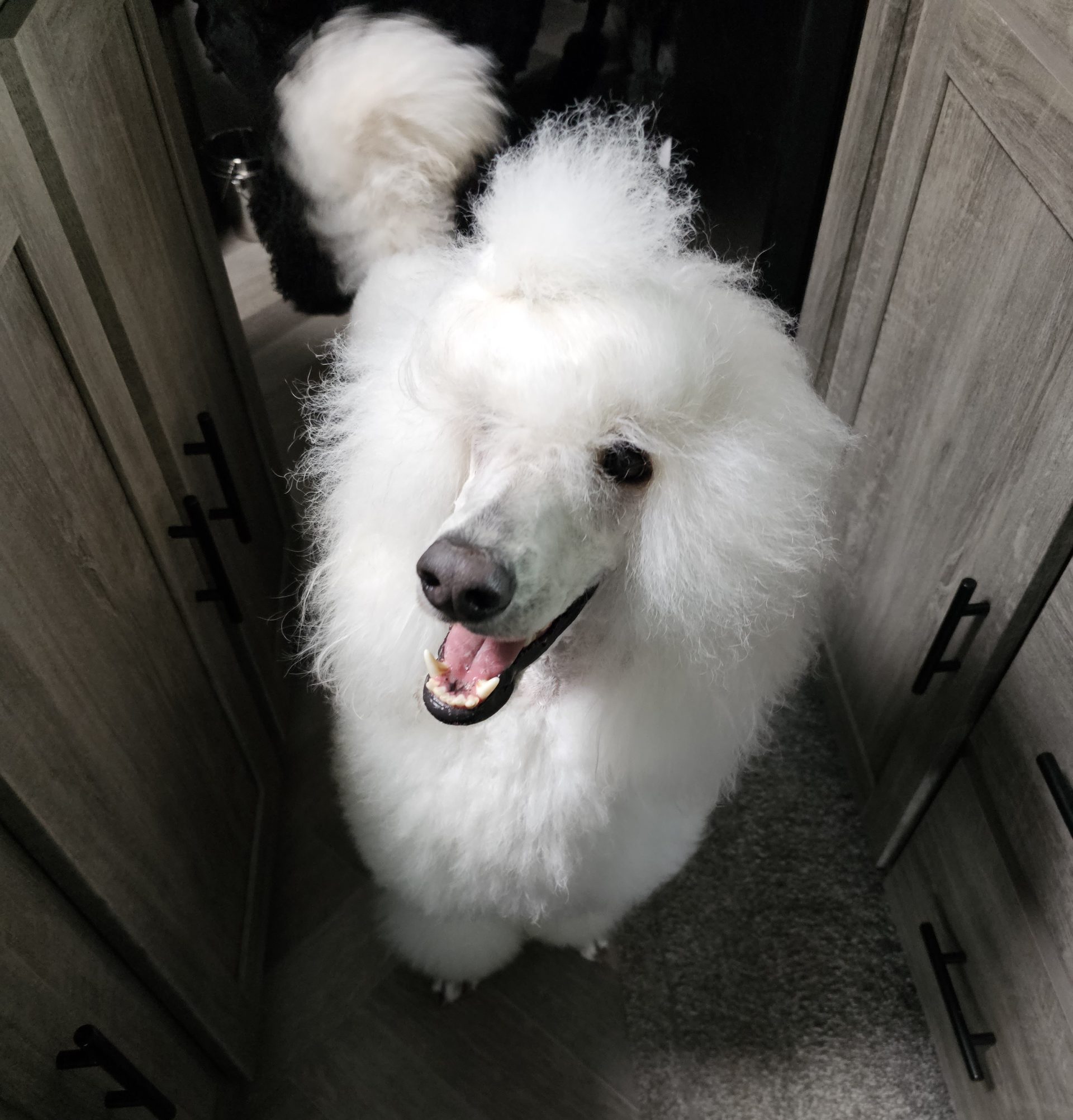 And finally, I am thrilled to announce that Daphne has successfully passed all of her rigorous health testing, marking a significant milestone in her journey within our breeding program. Her comprehensive health evaluations included DNA testing for genetic diseases, OFA cardiac examination, OFA eye assessment, and OFA hip evaluation, which earned her an “excellent” score. She has also been tested for Canine Genetic Diversity so we may match her with sires that will improve upon the gene pool. Daphne’s outstanding results not only reflect her exceptional physical health but also demonstrate our commitment to maintaining the highest breeding standards. With her exceptional health profile, Daphne has earned her rightful place as an integral member of our breeding program, contributing to our mission of producing healthy and well-balanced standard poodles.