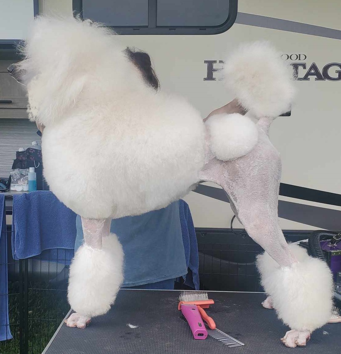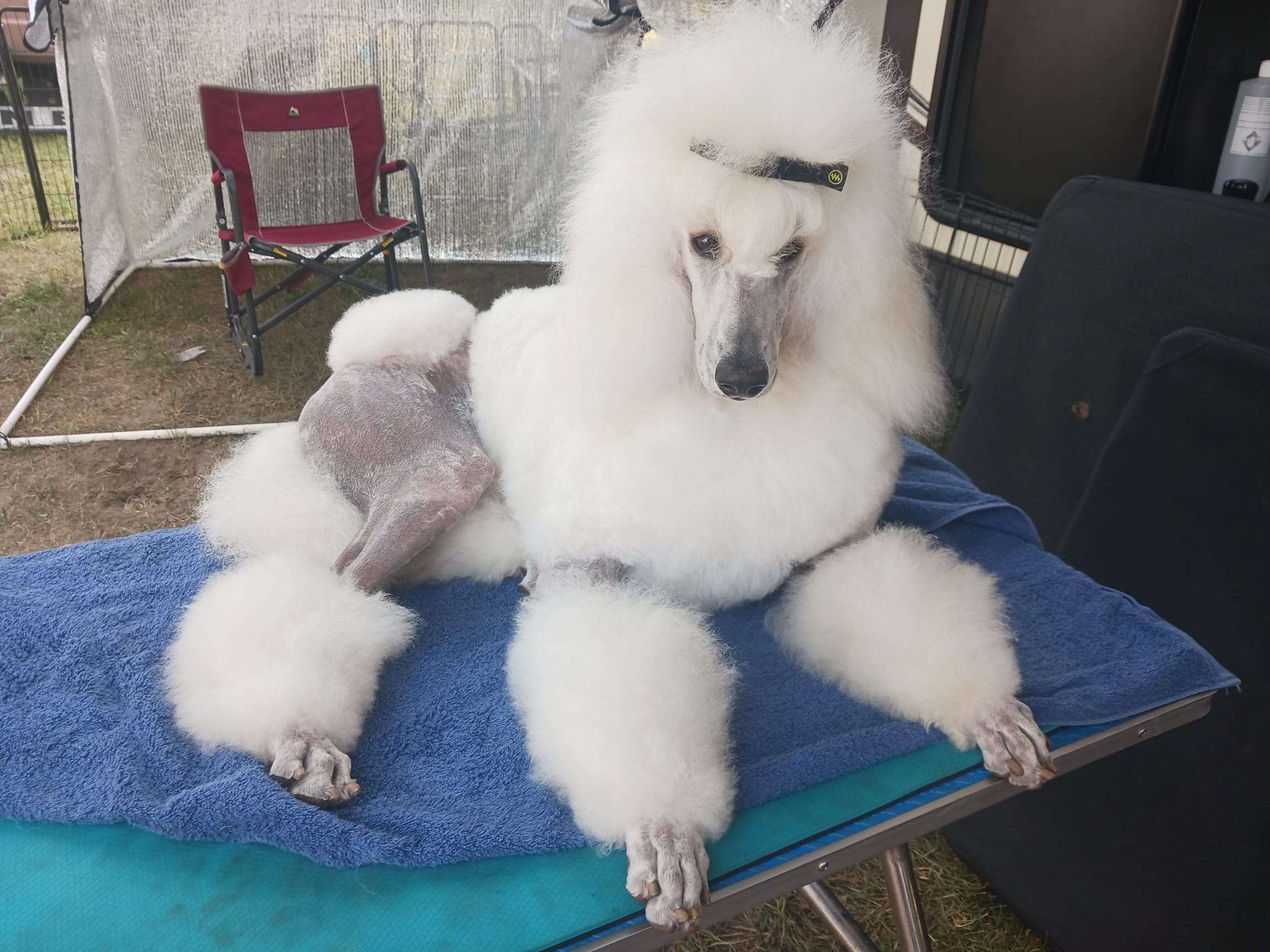 Daphne embarked on her journey in the show ring as a novice puppy, and with her illustrious bloodlines, our expectations were nothing short of spectacular. Currently residing with our trusted co-owner at Meeker’s Ridge Standard Poodles, Daphne had a blast this summer, traveling and showcasing her talents alongside me and a junior handler.