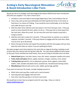 1. Avidog® International: Dr. Gayle Watkins, a co-founder of Avidog®, has extensively discussed ESI in her publications. One such resource is the transcript titled “Baby Noses – Introducing Scents to Neonate Puppies,” which provides insights into the methodology and benefits of ESI.