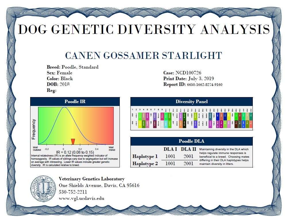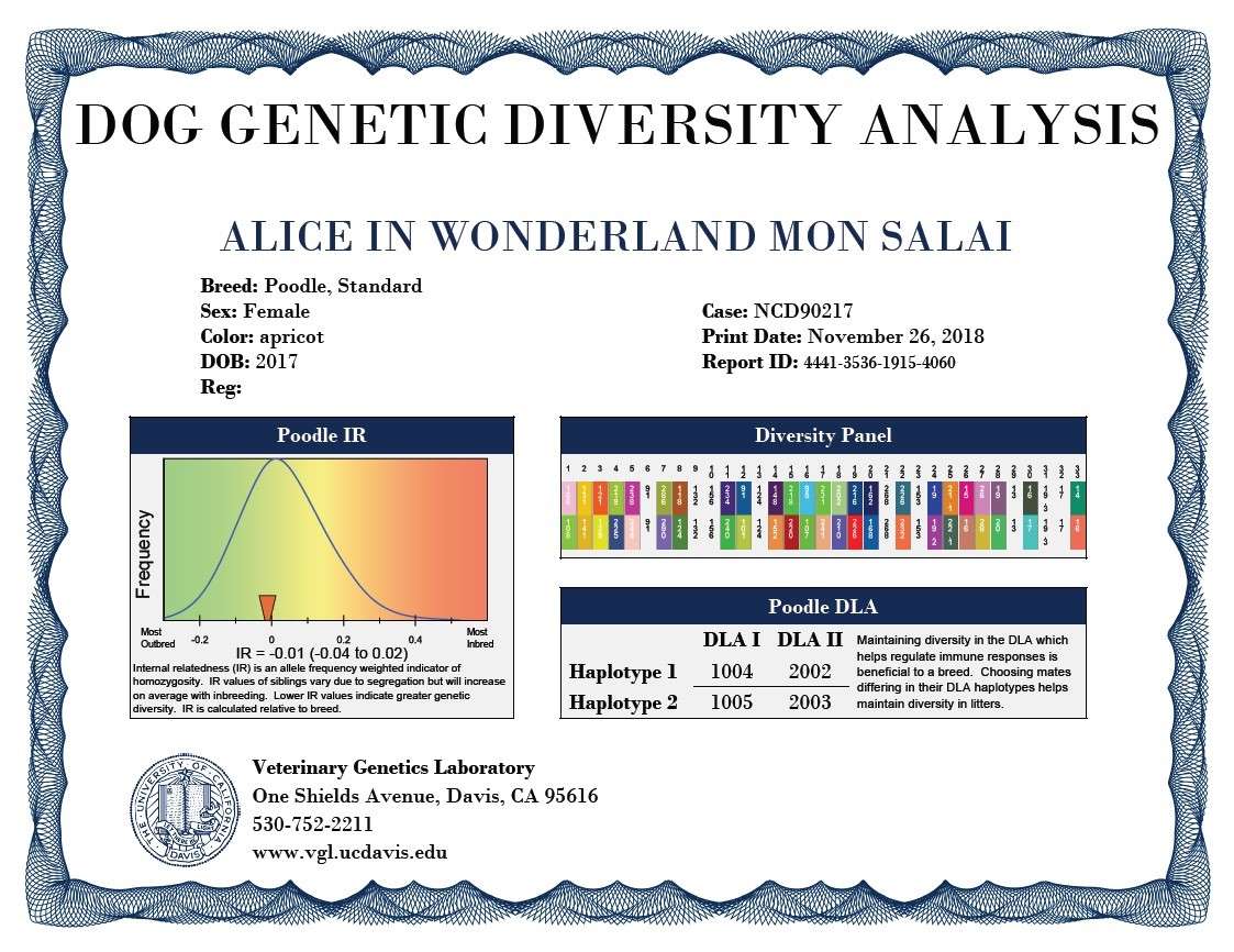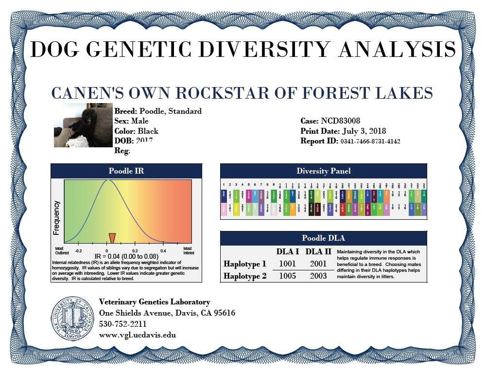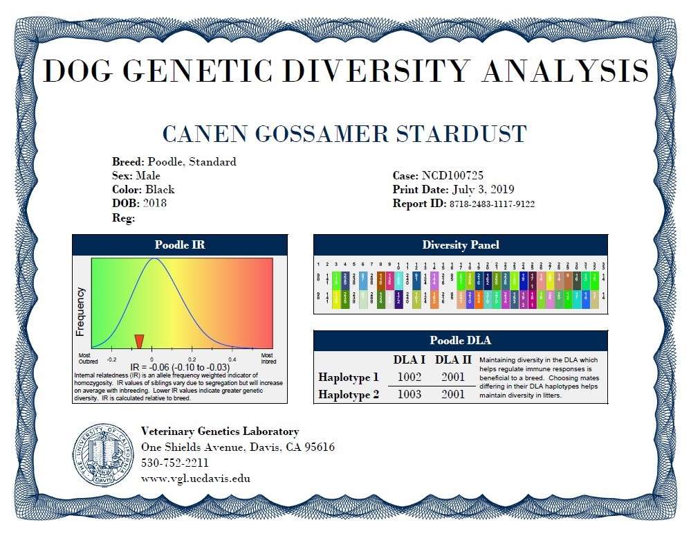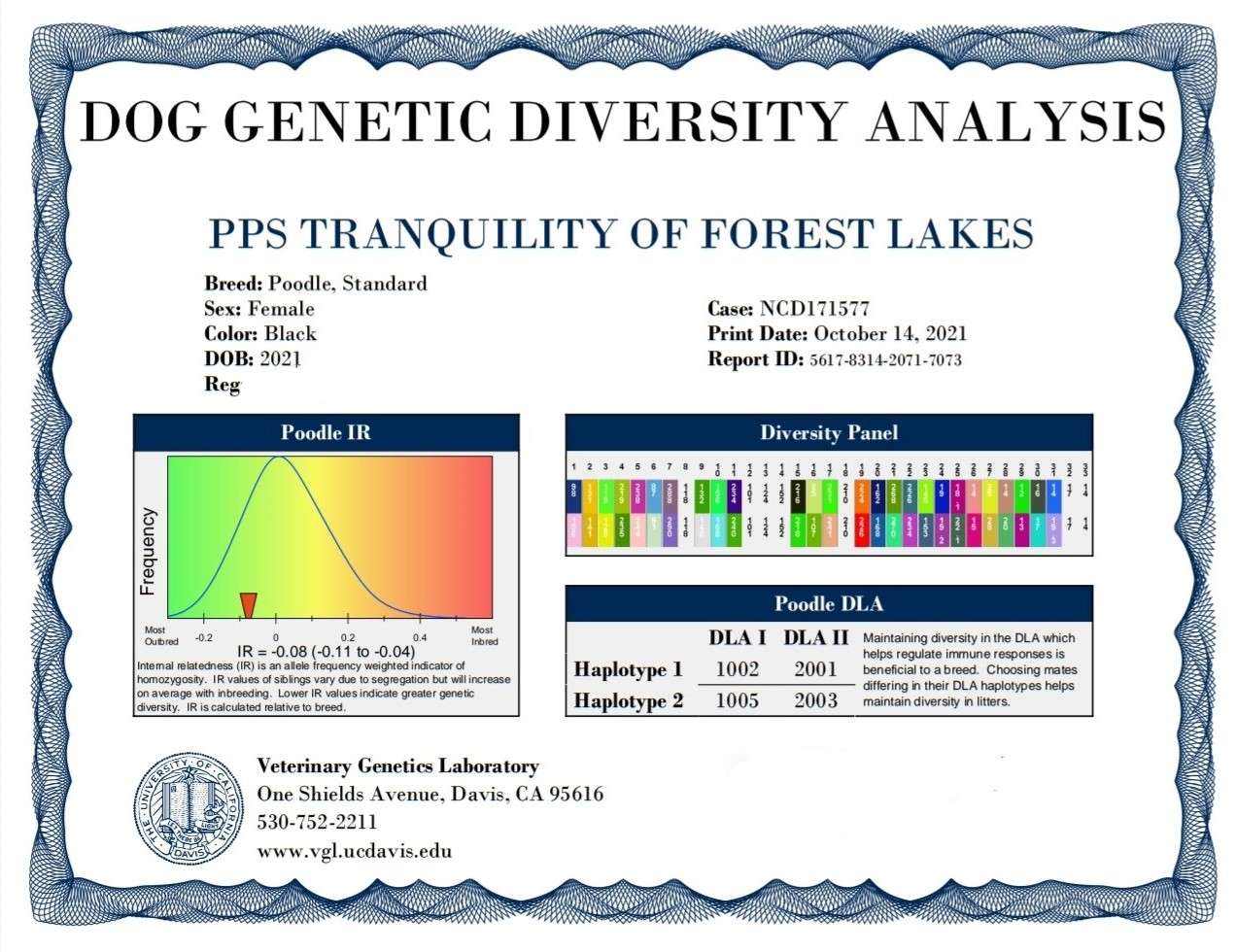 In addition to CHIC certification, we DNA test for more than 200 genetic conditions, including those especially important in standard poodles: