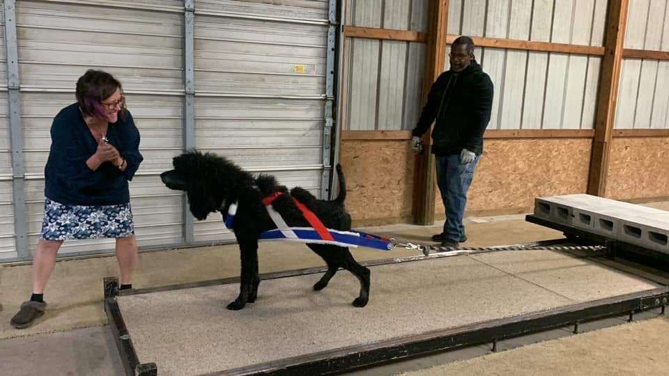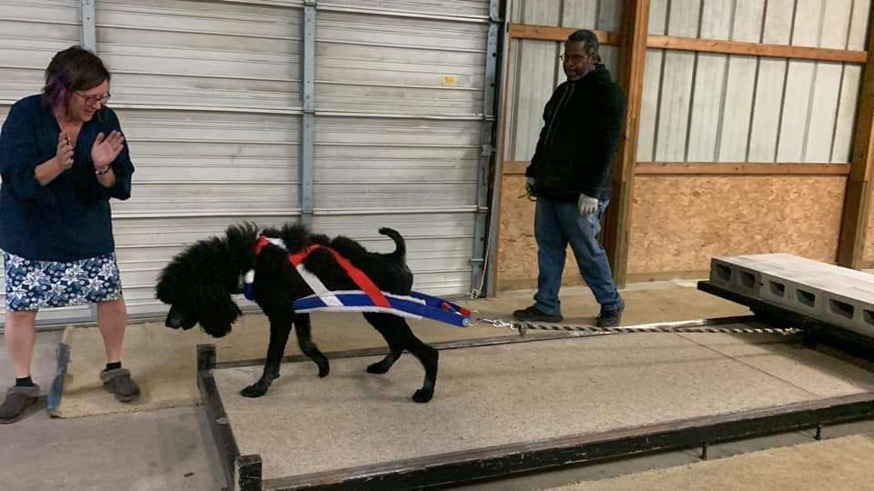The next row of photos show Rhett and me during his very first weight pull title. I’m right there beside him, cheering him on as he powers across the line—and, of course, showering him with love and scritches once he gets there!
